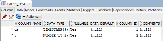 ‘{“ds”:”TIMESTAMP”, “y”:”NUMBER(15, 2)”}’,