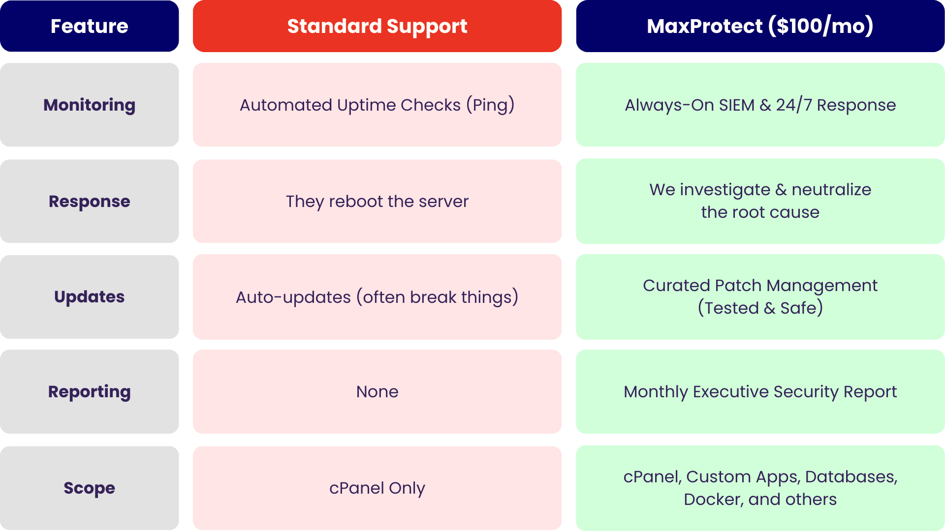Most hosting providers just keep the lights on. We keep the intruders out.